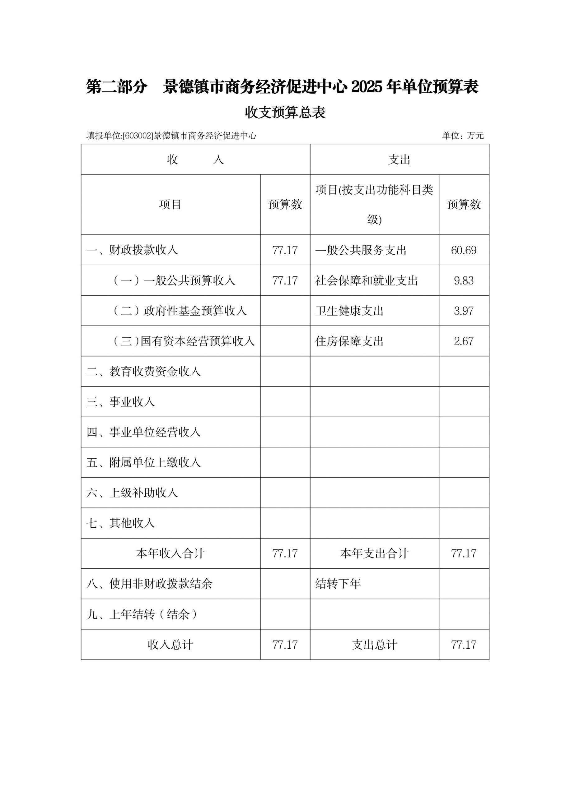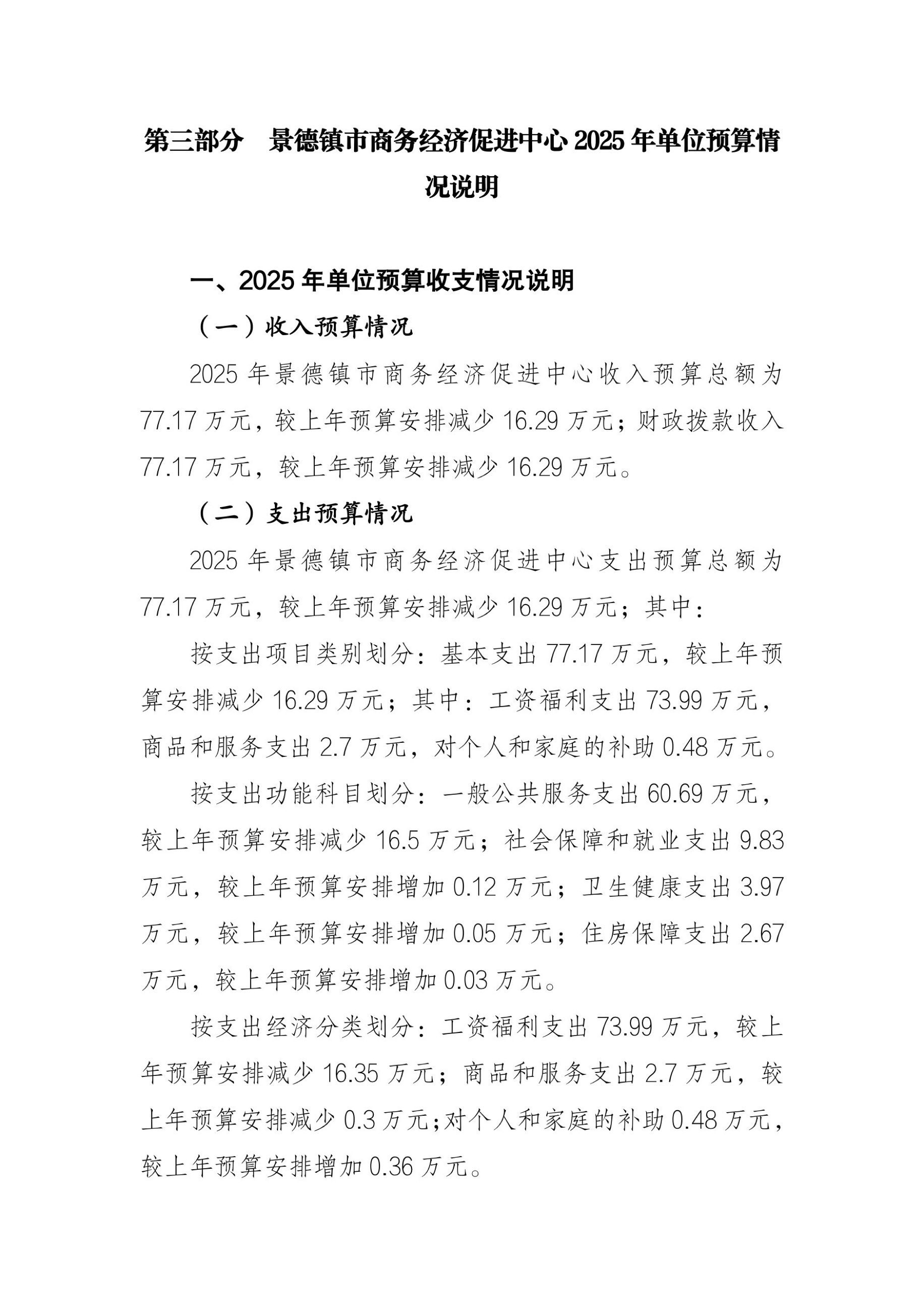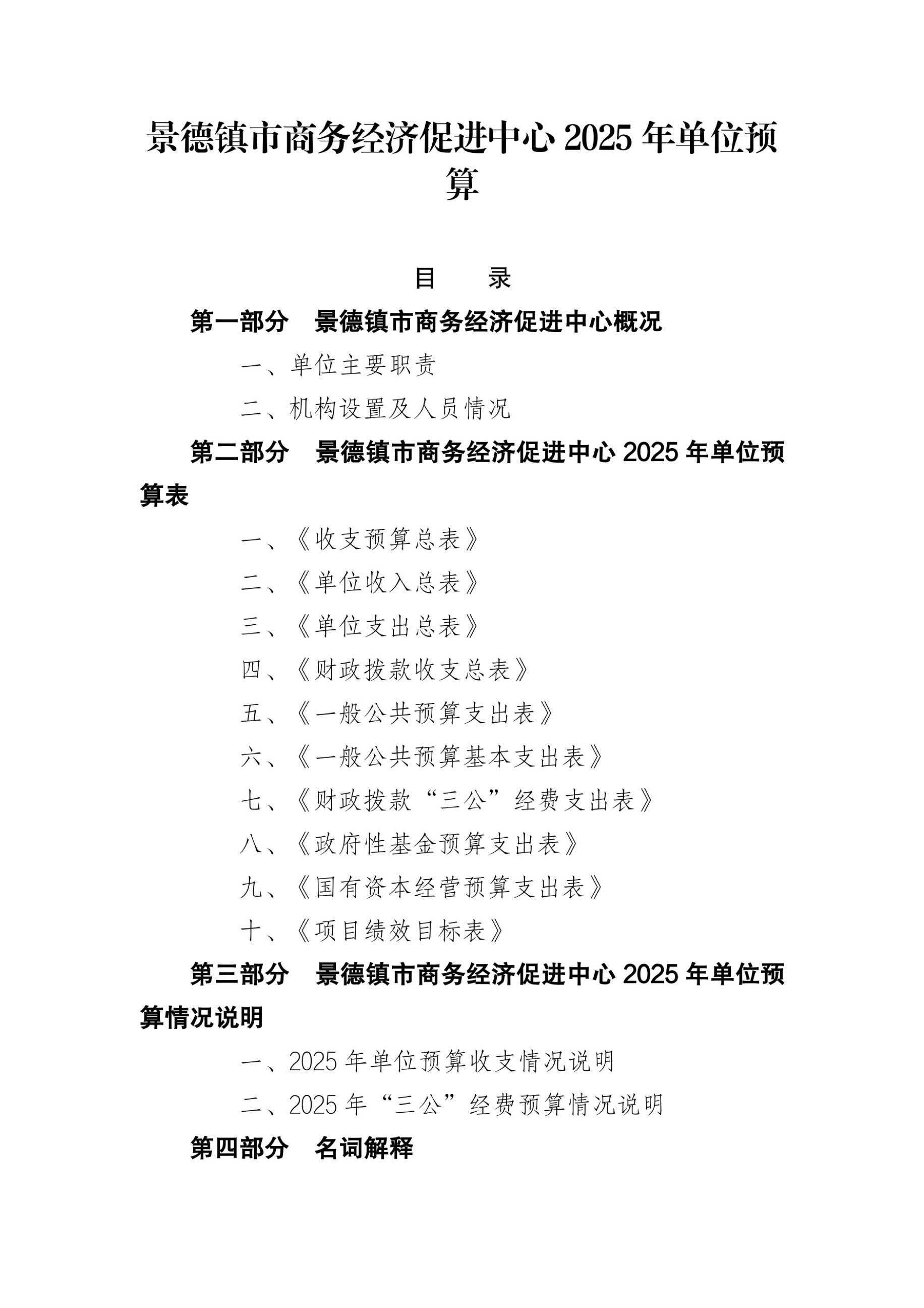 景德镇市商务经济促进中心2025年单位预算