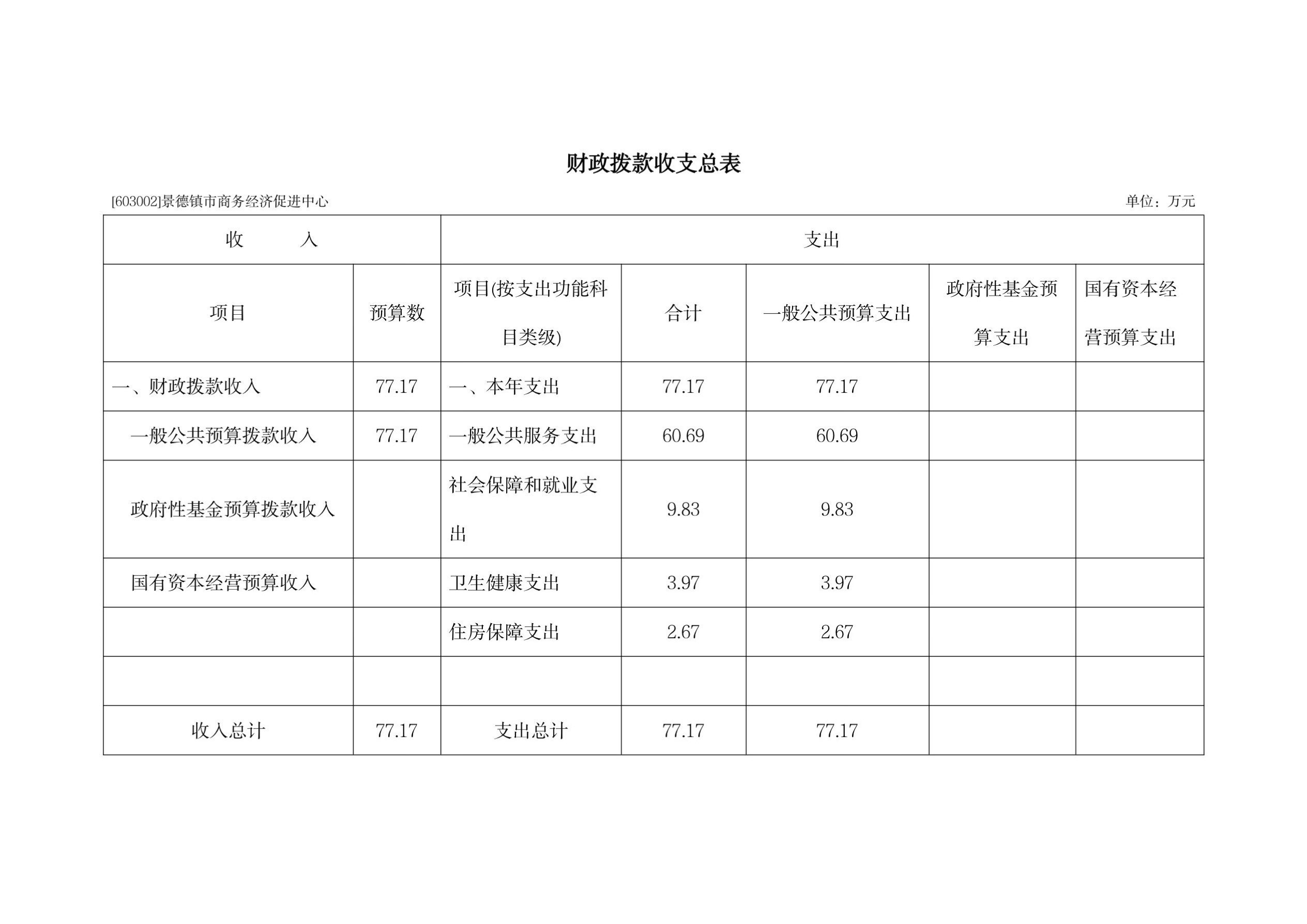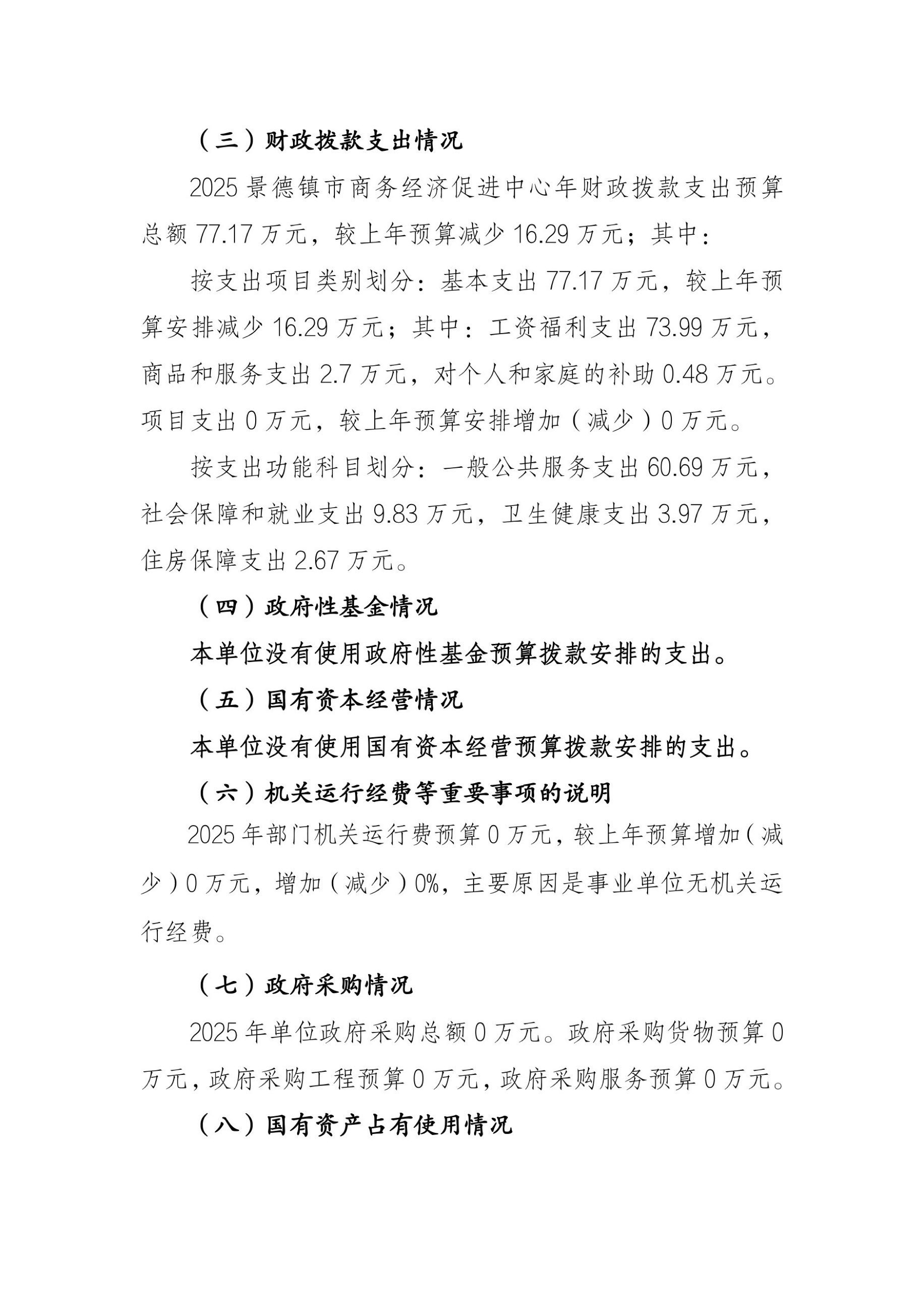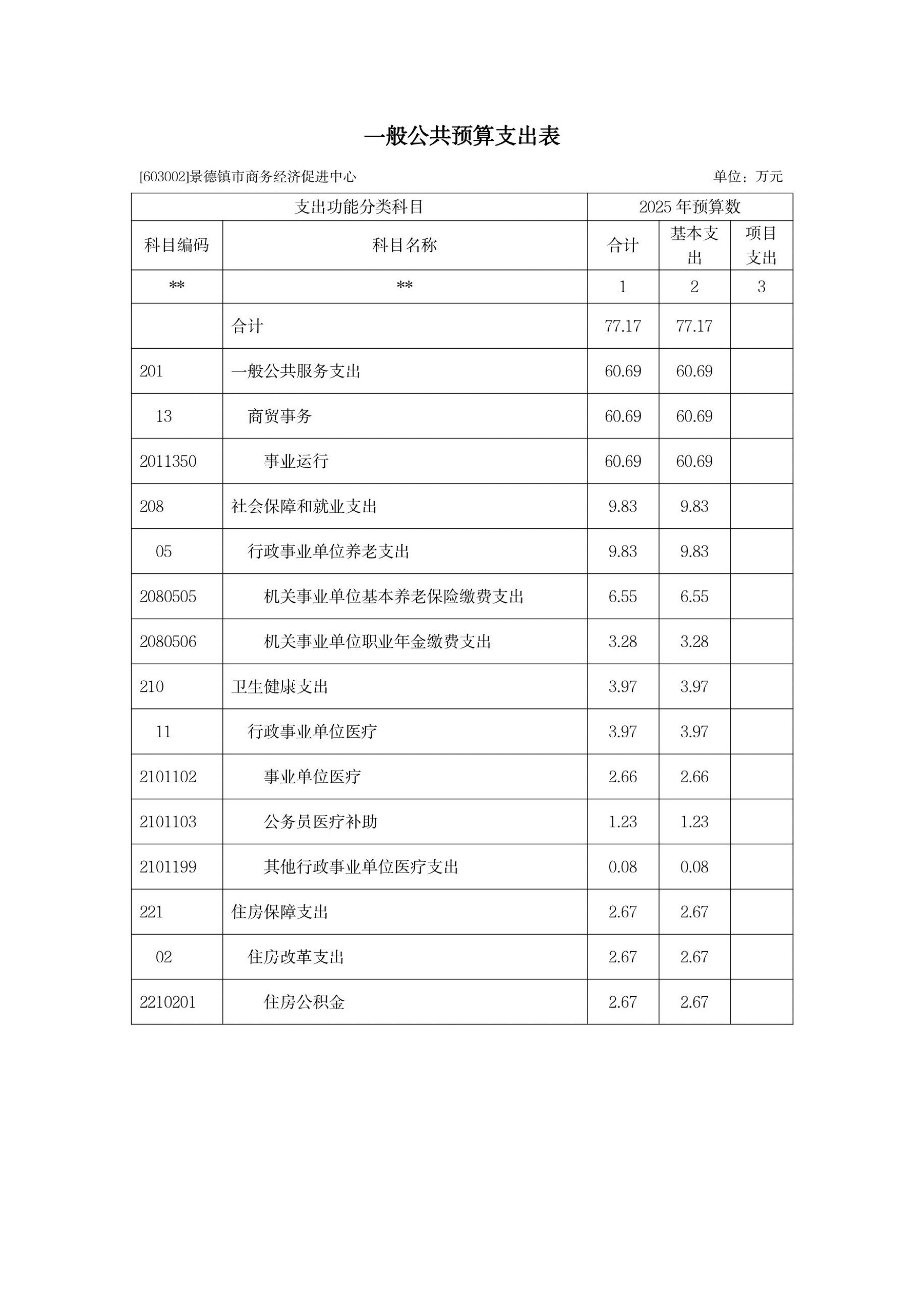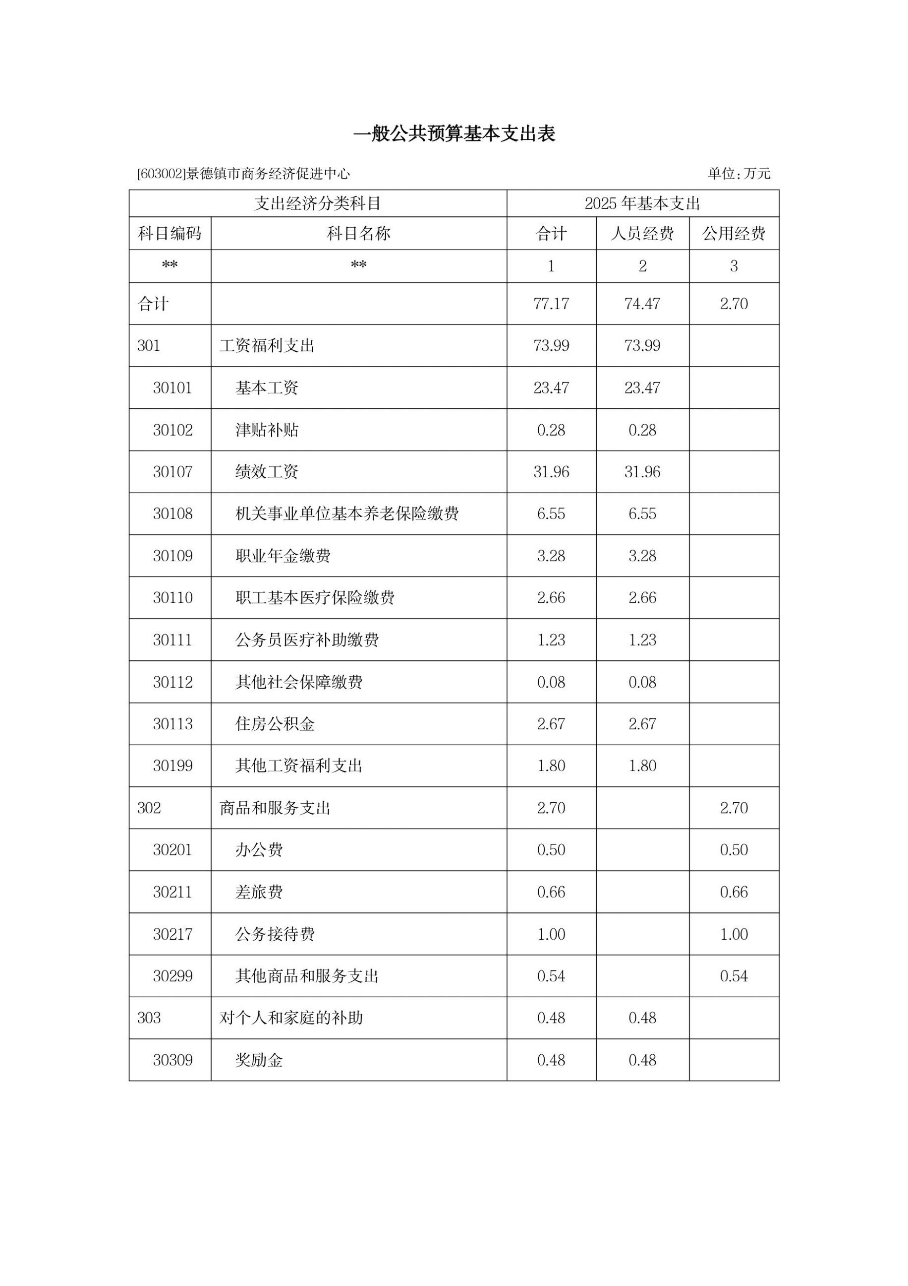 景德镇市商务经济促进中心2025年单位预算