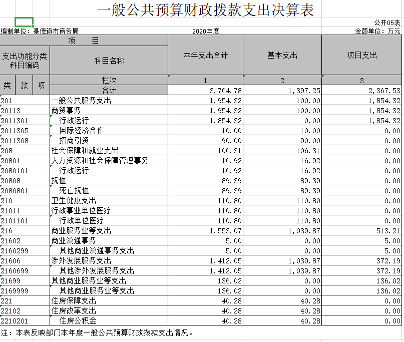 (二)行政运行:反映行政单位(包括参公单位)的基本支出。