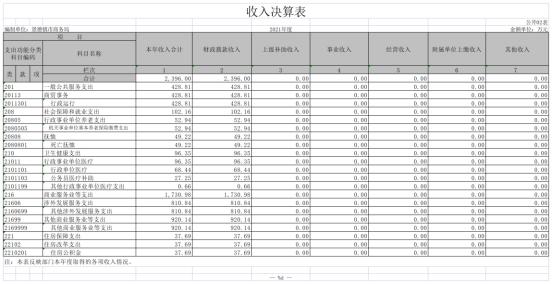 本年收入的具体构成为: 财政拨款收入 2396 万元, 占 100%。二、支出决算情况说明