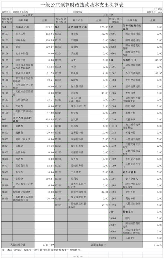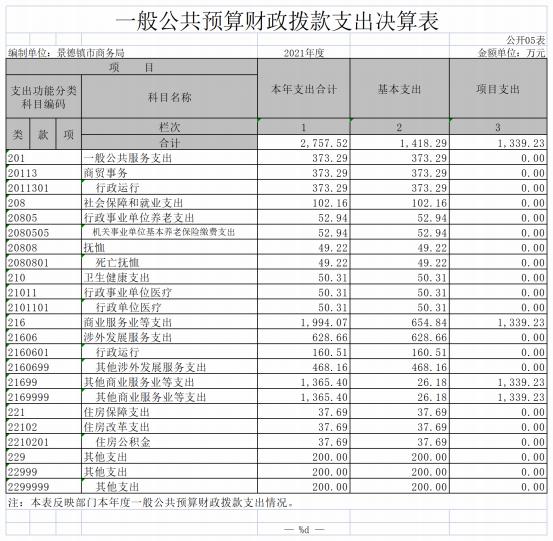 本部门 2021 年度支出总计 3648.86 万元,其中本年支出合计 2757.52 万元,较 2020 年减少 1007.26 万元,下降 26.75%,主要原因是:省厅拨专项资金和市政府拨开放型专项资金的减少。年末结转和结余 891.34 万元, 较 2020 年减少 361.52 万元,下降 28.86%,主要原因是: 专项资金结余结转的减少。
