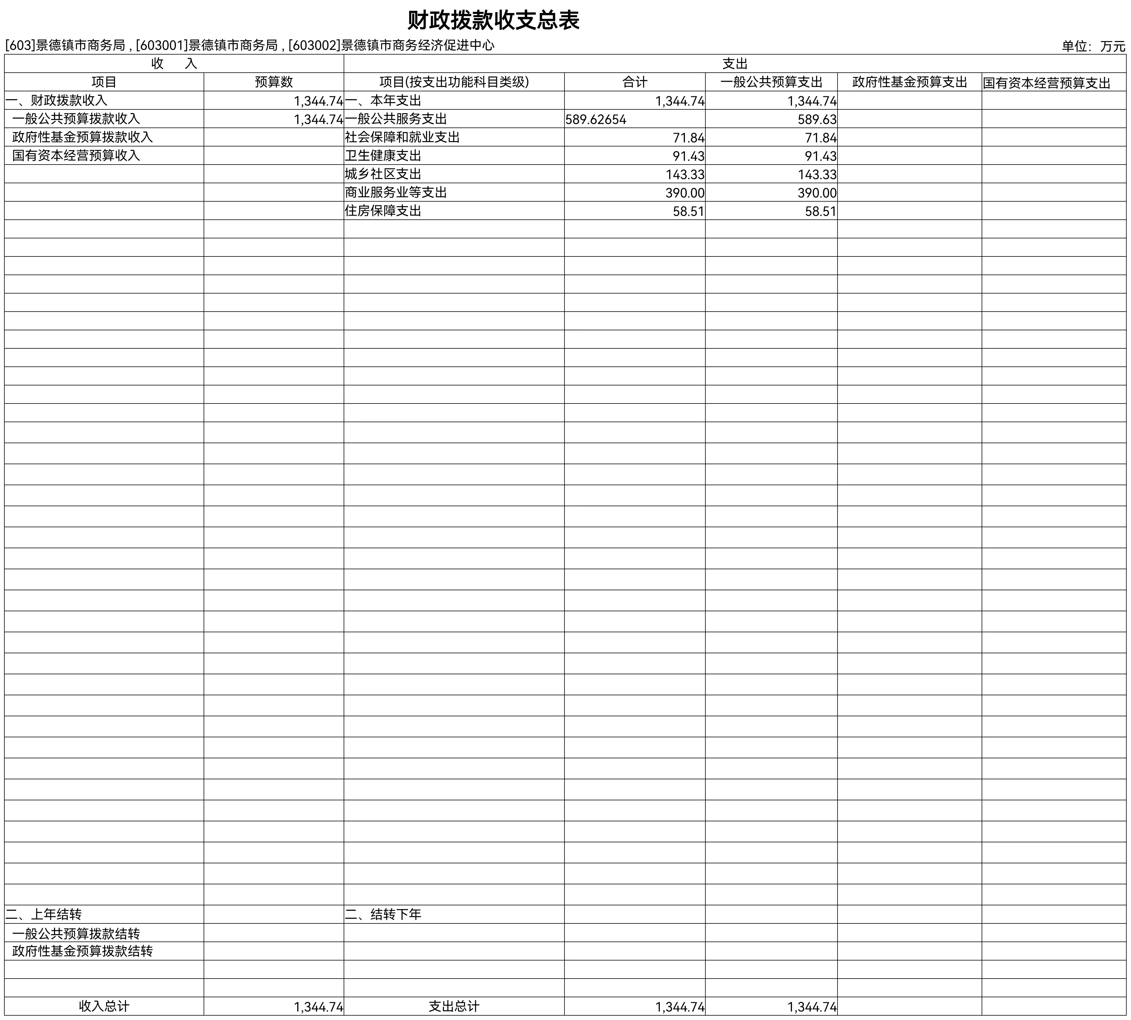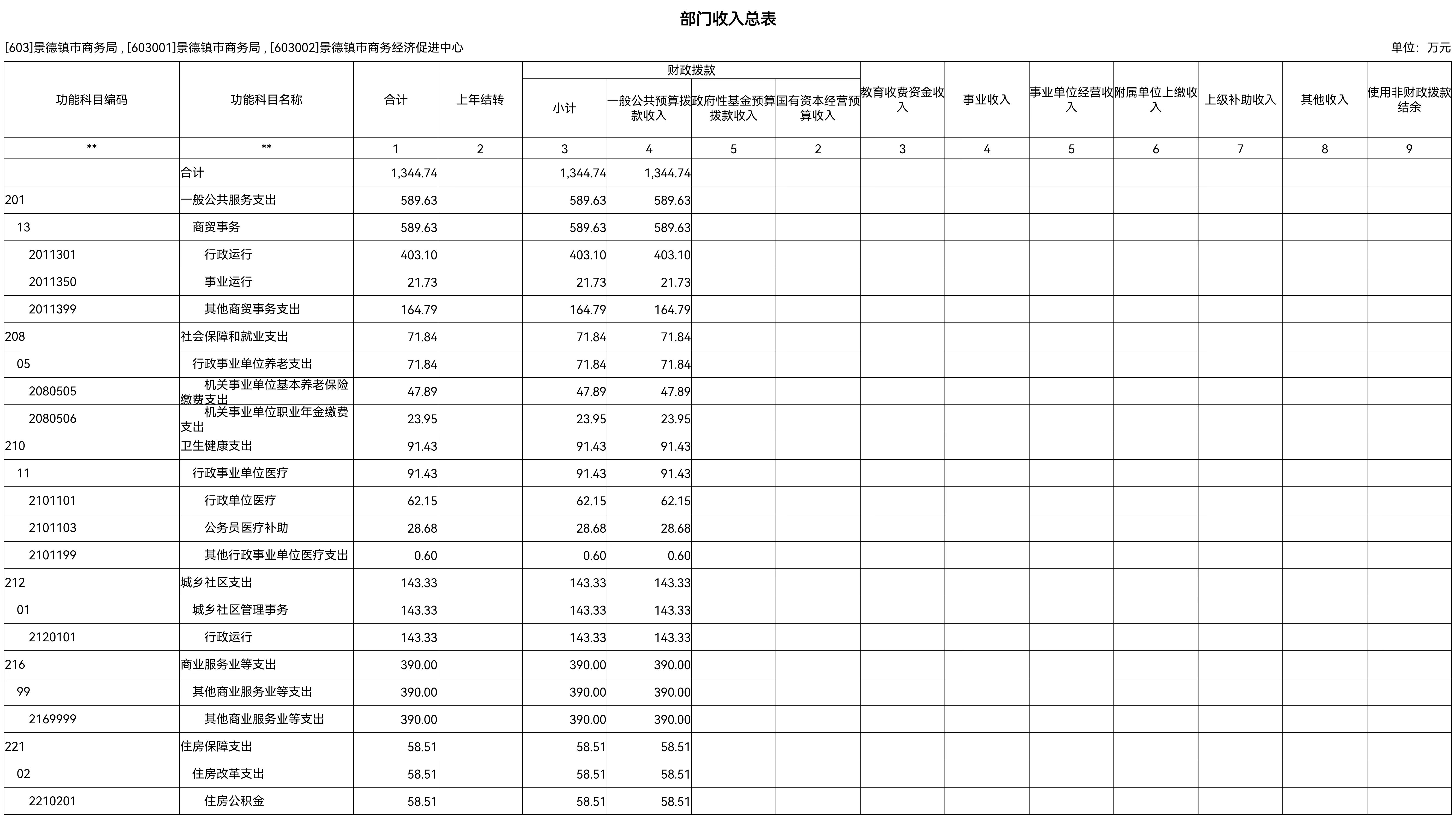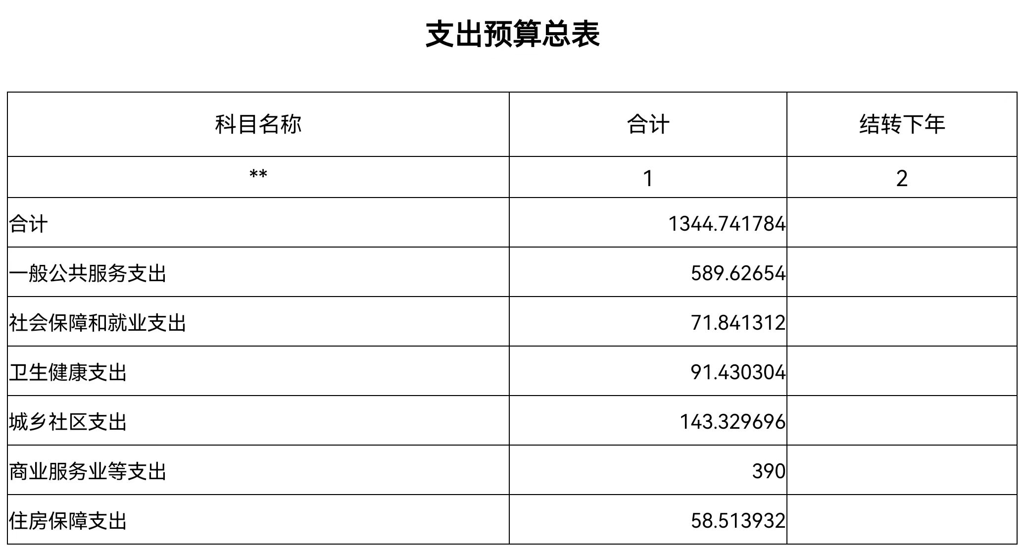 按支出功能科目划分:一般公共服务支出589.63万元,社会保障和就业支出71.84万元,卫生健康支出91.43万元,住房保障支出58.51万元。