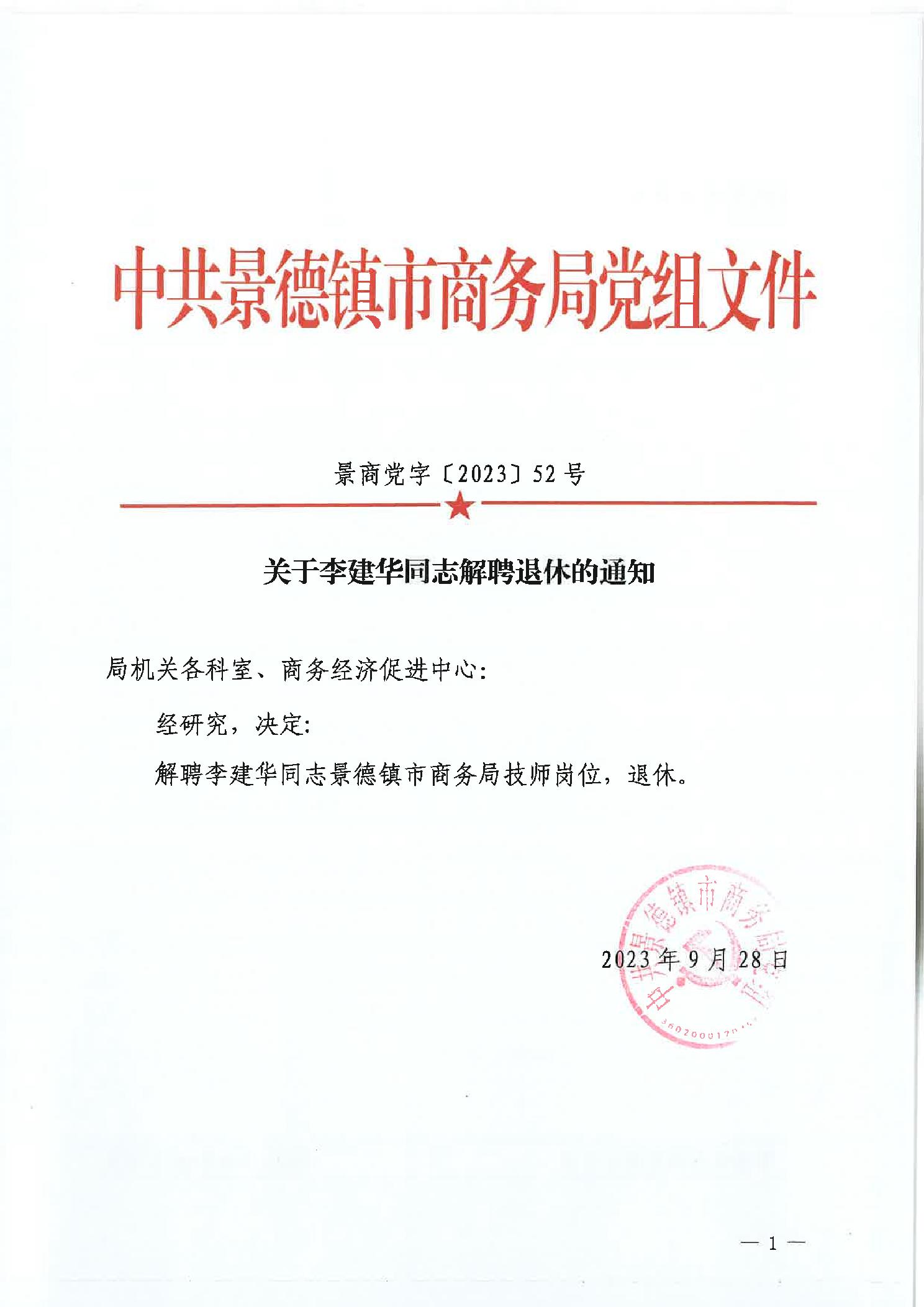 关于李建华同志解聘退休的通知