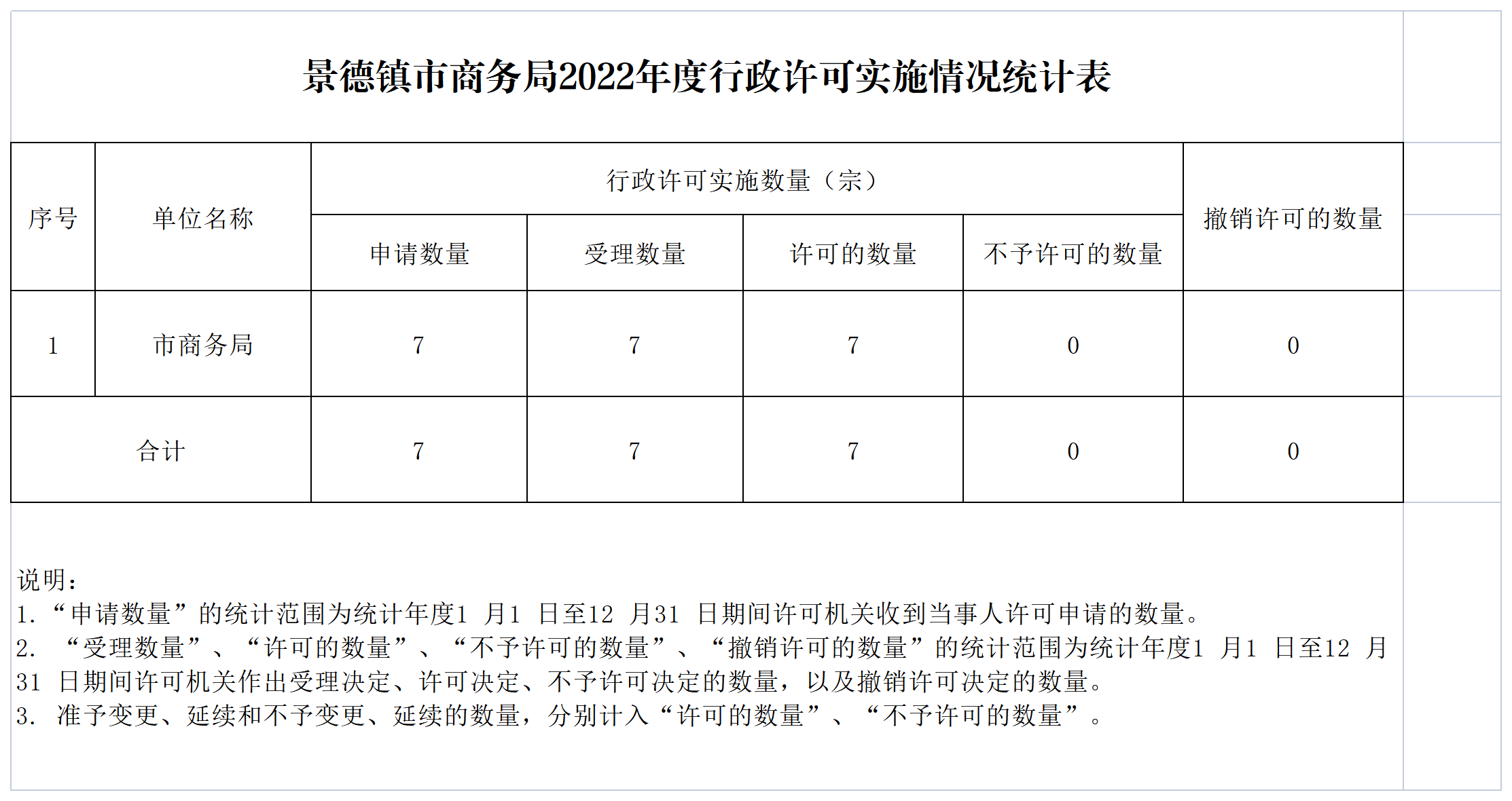 景德镇市商务局2022年度行政许可实施情况统计表