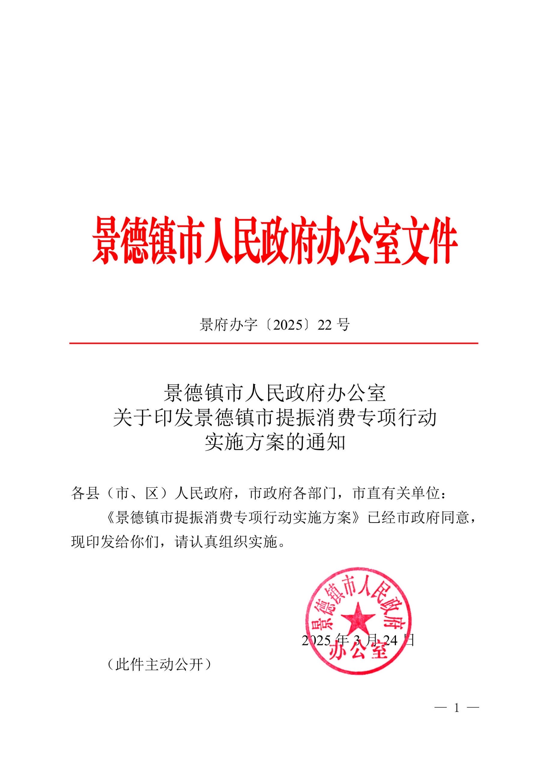 景德镇市人民政府办公室关于印发景德镇市提振消费专项行动实施方案的通知