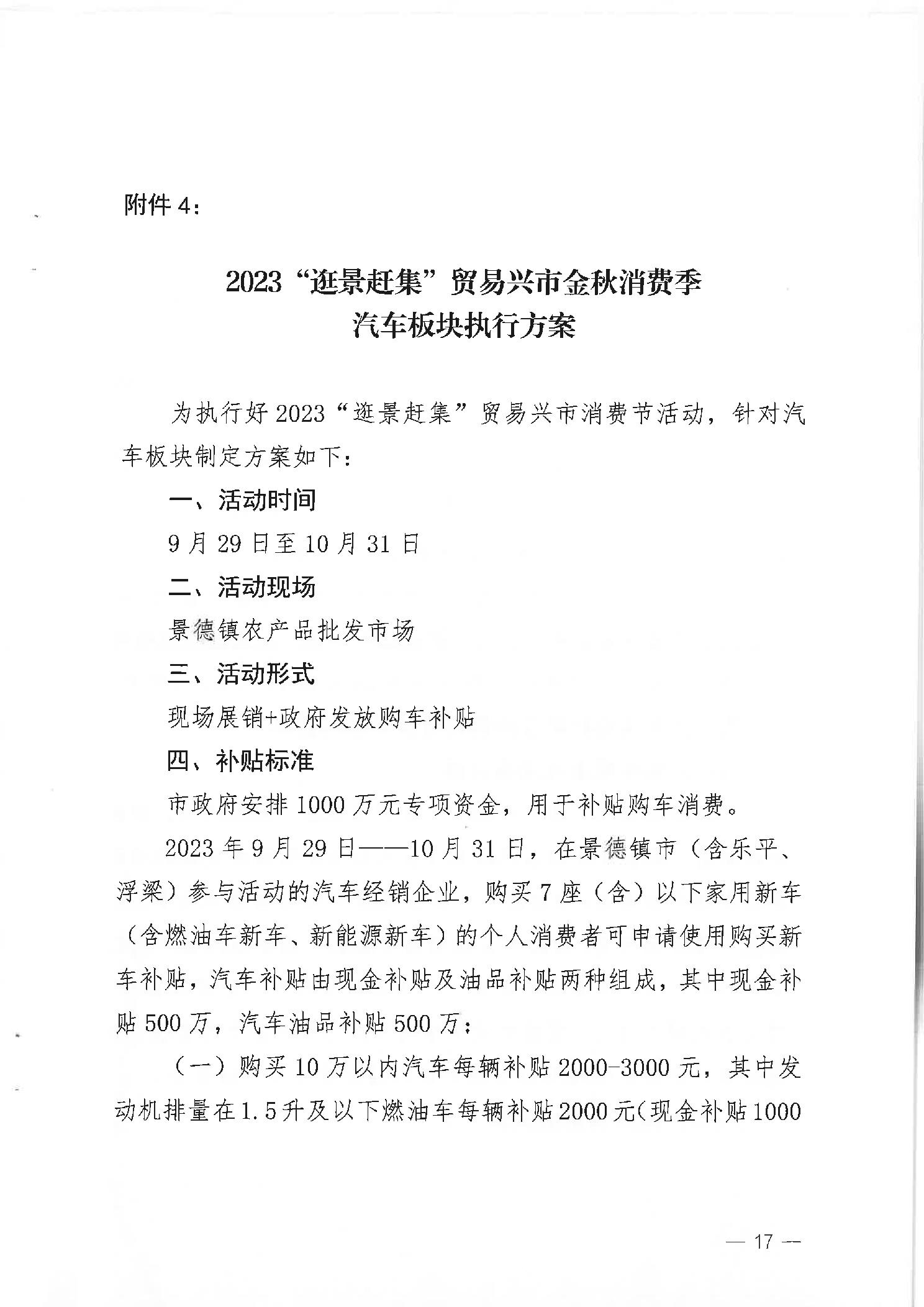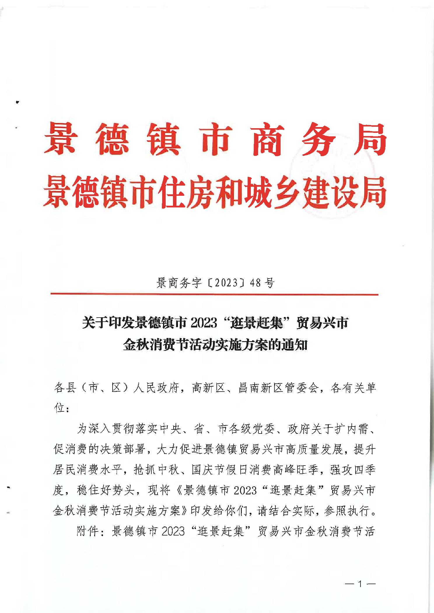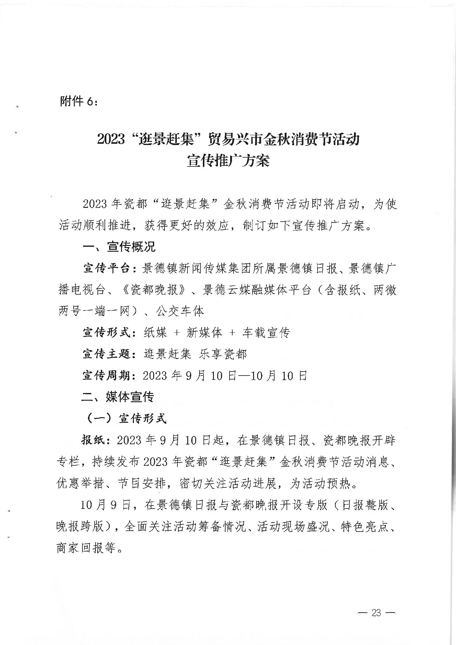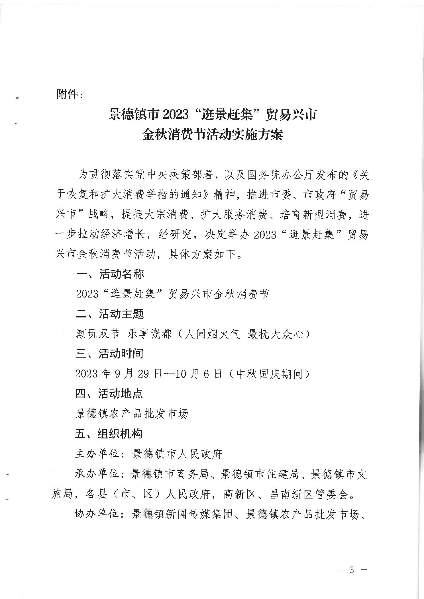 【促进和扩大消费】关于印发景德镇市2023“景赶集”贸易兴市金秋消费节活动实施方案的通知
