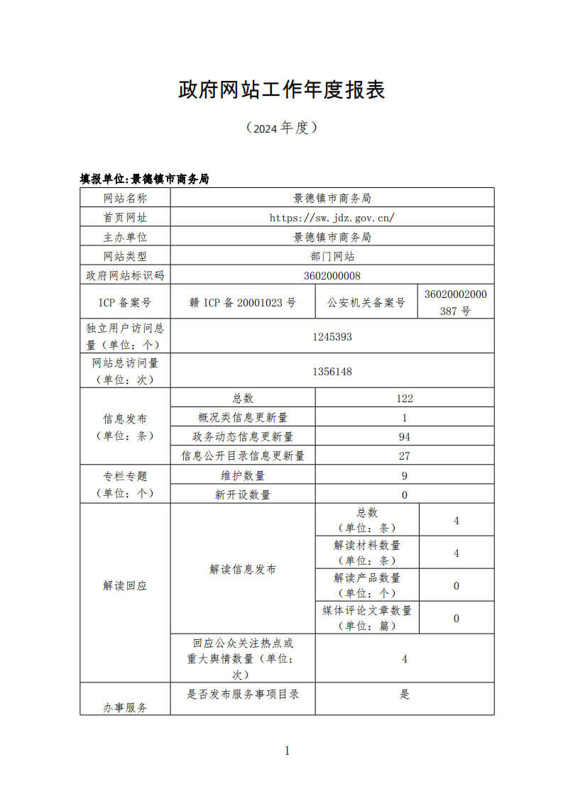 景德镇市商务局2024年政府网站年度报表
