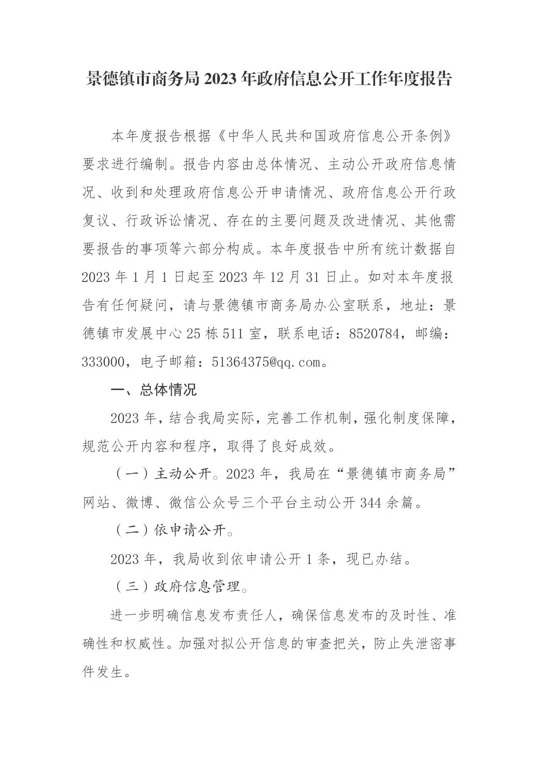 景德镇市商务局2023年政府信息公开工作年度报告