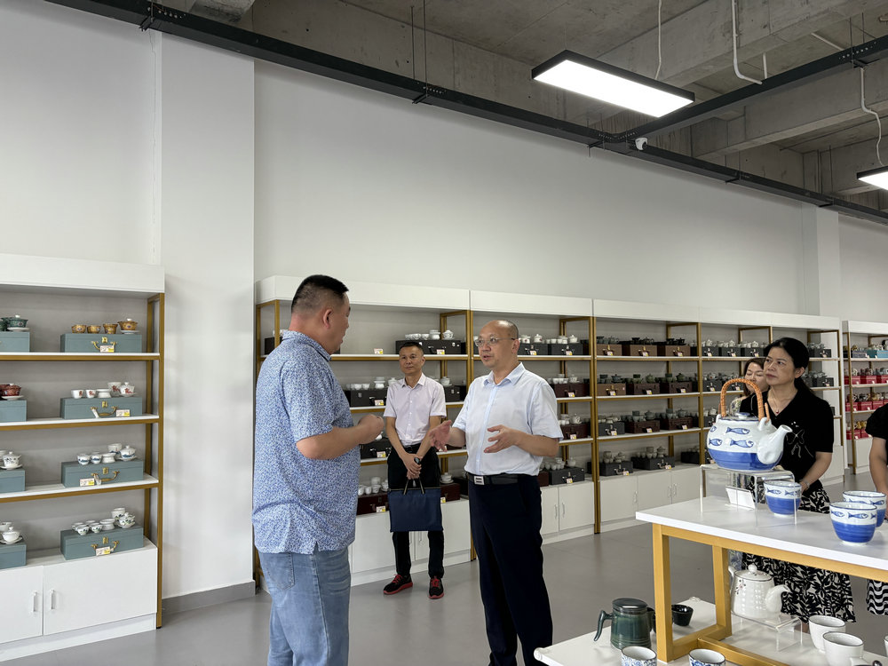 雷军走进选品中心,与企业负责人面对面交流,细致询问企业生产经营、进出口业务及未来规划等情况,详细了解企业发展中遇到的困难和问题。企业负责人介绍了目前跨境电商产业园区相关运营情况及未来重点发展方向,并提出了相关诉求。交流中,雷军立即对企业诉求进行回应,明确表示会在国内外展会、跨境电商新业态等方面给予相关支持。他强调,千墨跨境电商产业园区作为我市打造的多功能日用陶瓷跨境电商产业园,对推动我市日用陶瓷出口发挥着重要作用,要牢固树立“服务企业就是服务发展”的理念,主动靠前服务,精准对接企业需求,让企业在景德镇安心经营、放心投资、专心发展。