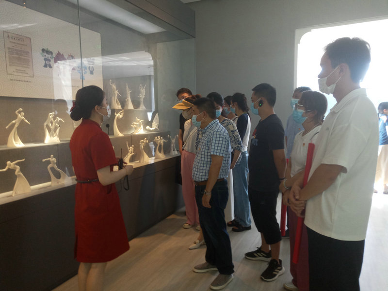 活动中,讲解员按照年代顺序向前来参观的干部职工逐个展厅讲解了新石器时代以来,以及汉、隋唐、五代、宋、元、明、清、民国、现当代的景德镇陶瓷制作发展历史,以及各个不同年代、不同历史时期传世精品代表作。重点介绍了景德镇是中华瓷国.瓷业之都,制瓷工业体系最完备的城市,国际性的陶人盛会,以及器成天下走、凤凰涅槃景德镇等值得自豪的瓷都的荣誉。尤其是国徽瓷、建国纪念瓷、国礼瓷、毛主席用瓷、重要历史时刻、奥运瓷、重要场合陈设瓷等让景德镇人民引以为荣的“国家记忆”。