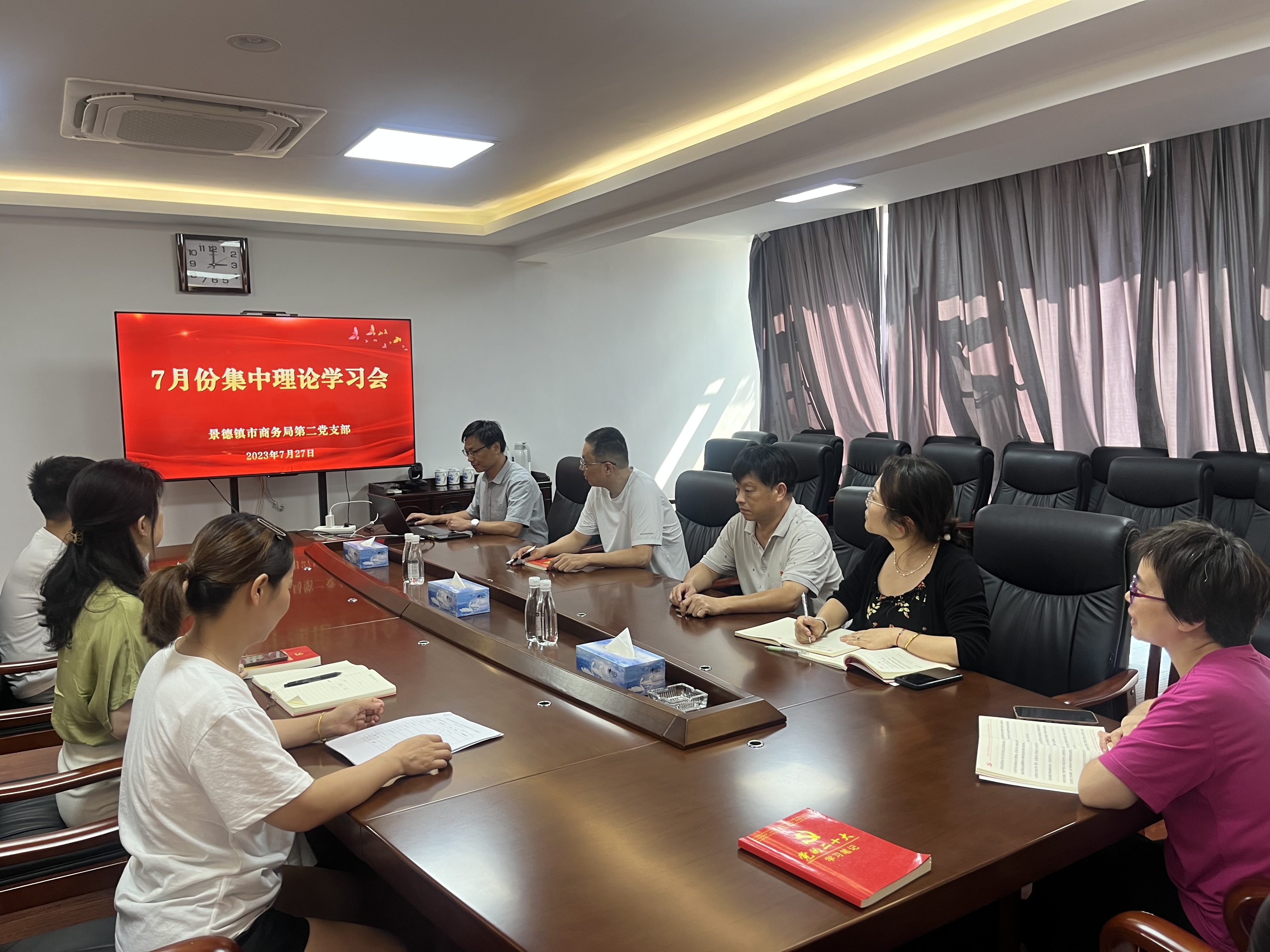 7月27日下午,市商务局第二党支部组织在家党员召开7月份集中理论学习会,第一时间传达学习了省委十五届四次全体(扩大)会议精神及市委十二届四次全体(扩大)会议上刘锋书记和雪梅市长的讲话。