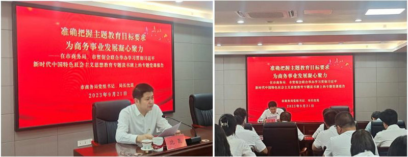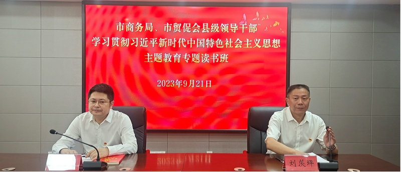 9月21日上午,市商务局、市贸促会县级领导干部学习贯彻习近平新时代中国特色社会主义思想主题教育专题读书班开班。市商务局党组书记、局长沈昆在开班式上作专题党课报告,市贸促会党组书记、会长刘茨坪主持会议。