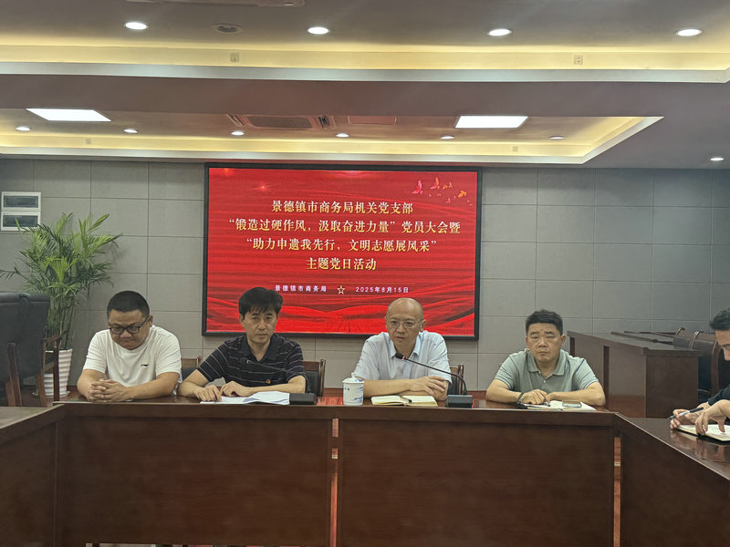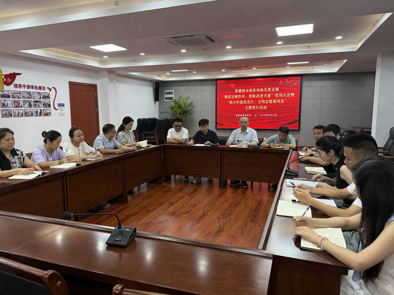 2025年8月15日上午10时,景德镇市商务局机关党支部召开“锻造过硬作风 汲取奋进力量”党员大会,旨在强化党员队伍作风建设,凝聚干事合力。
