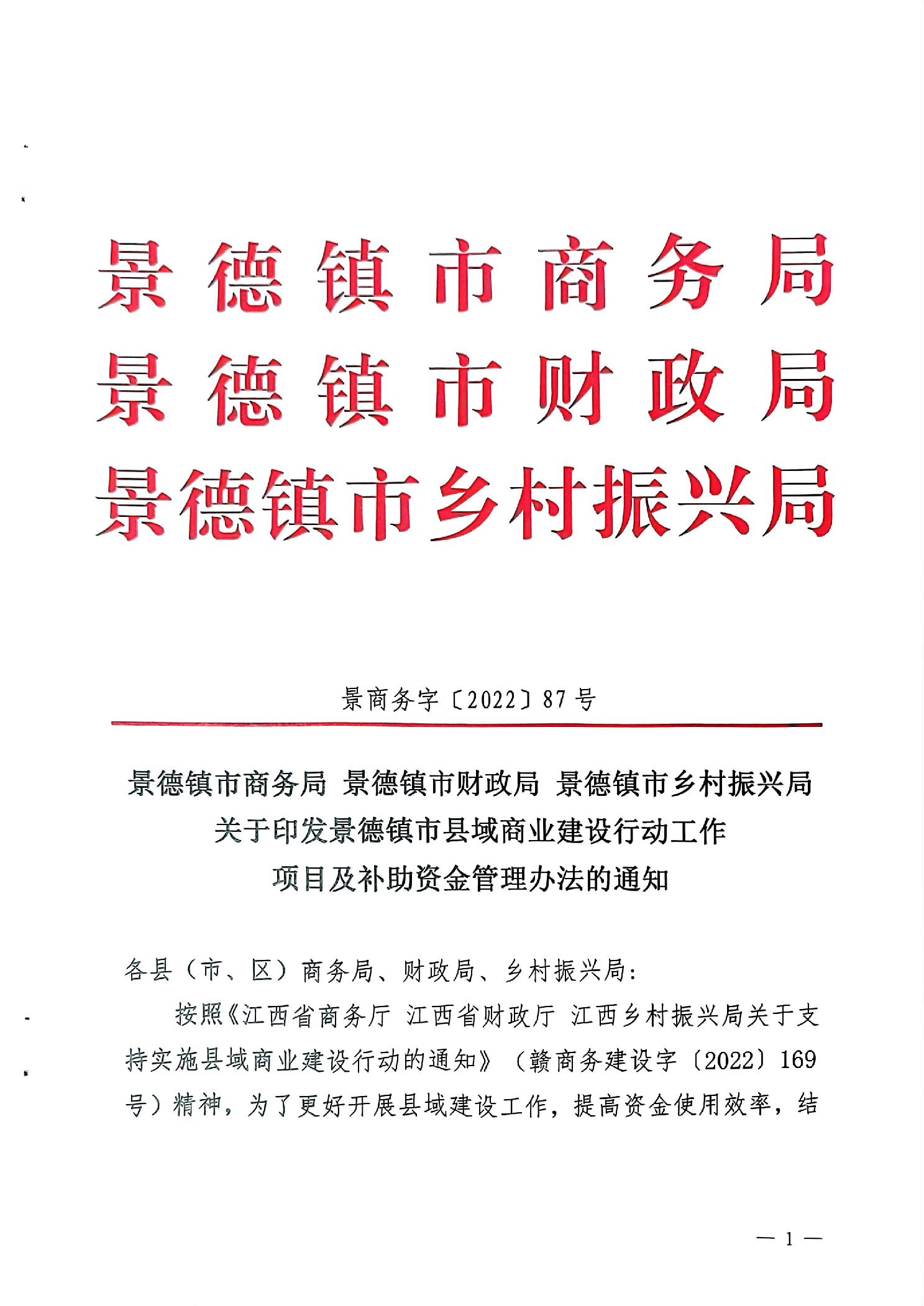 景德镇市县域商业建设行动工作项目及补助资金管理办法