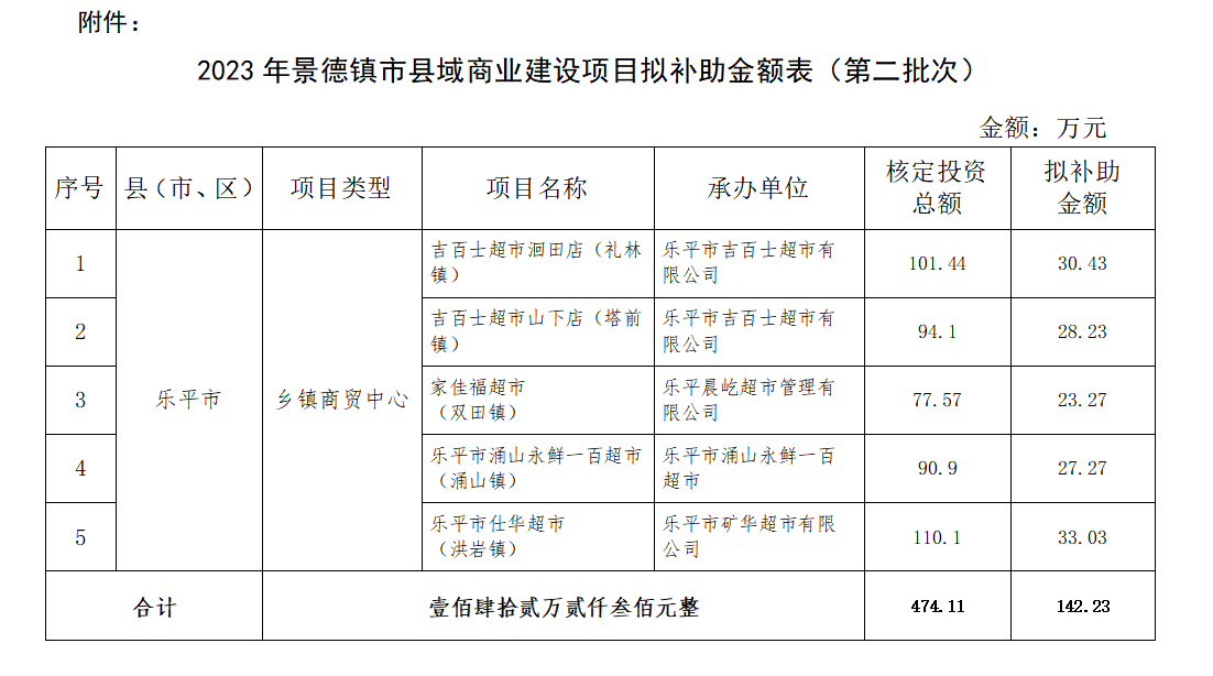 附件:2023年景德镇市县域商业建设项目拟补助金额表(第二批次)