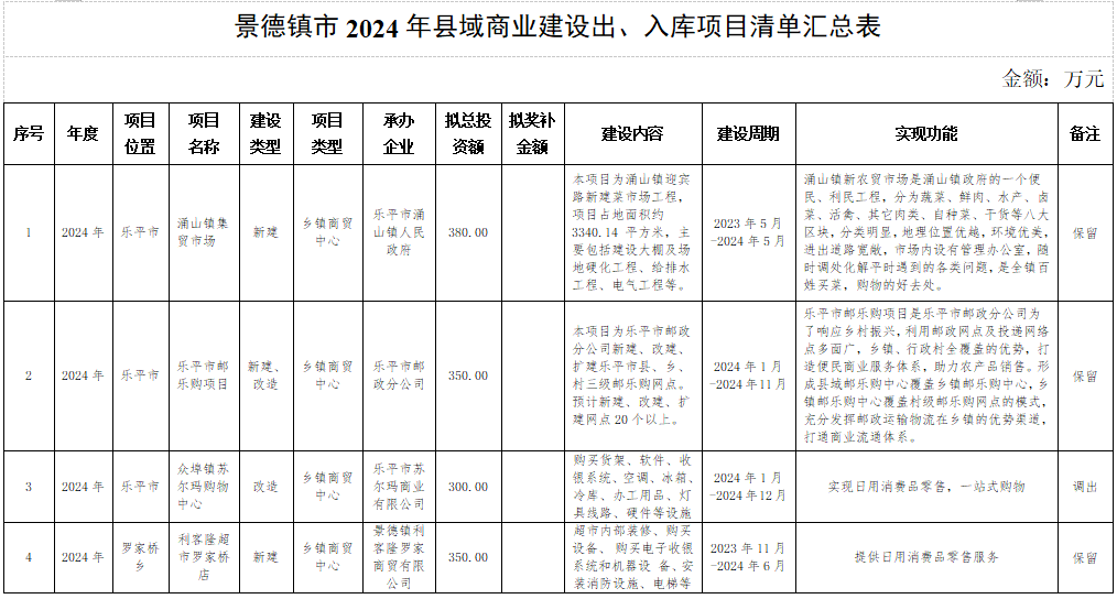附件:景德镇市2024年县域商业建设拟出、入库项目清单汇总表